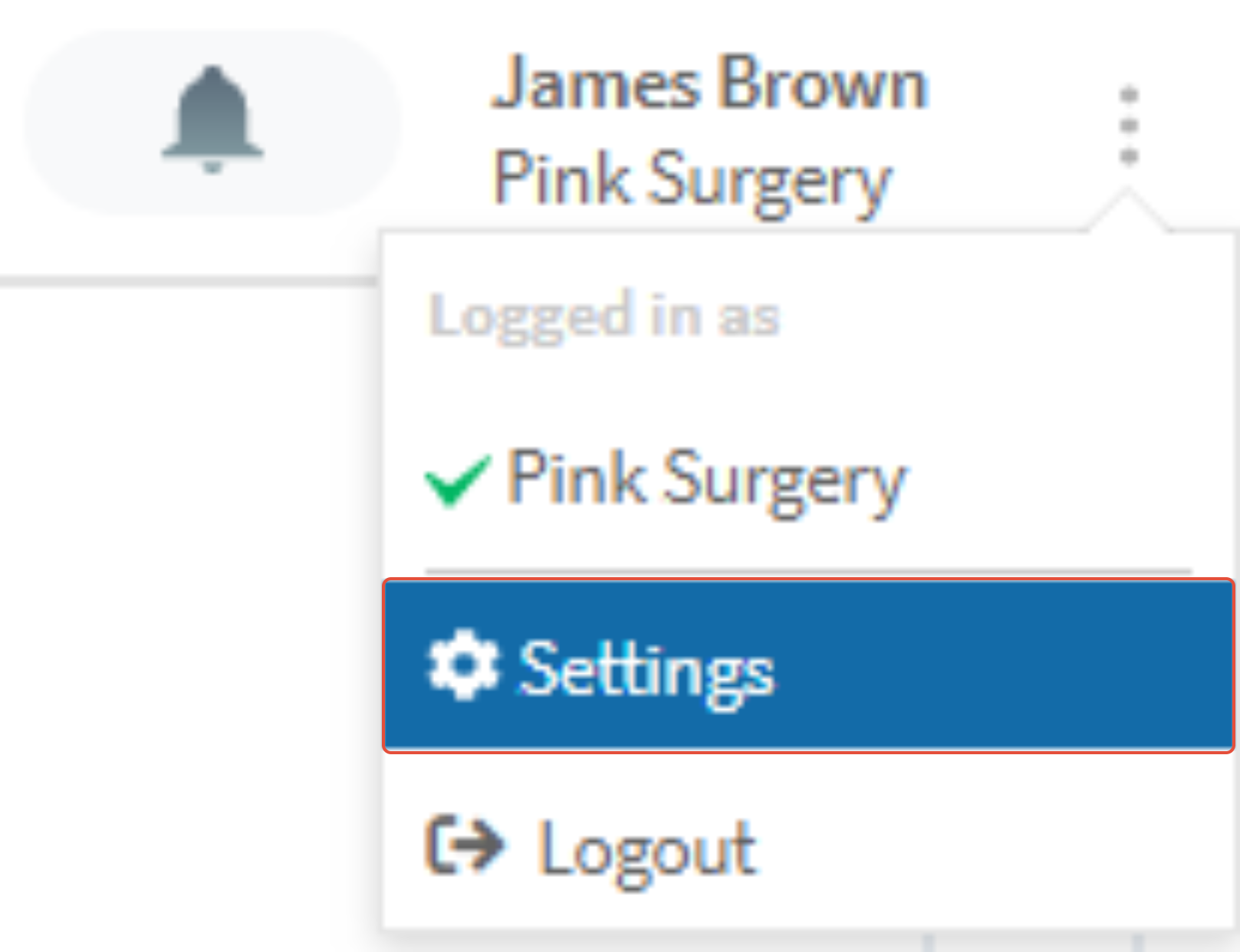 Log in to Ardens Manager and to the top right of the home page, select your name, followed by the Settings option.