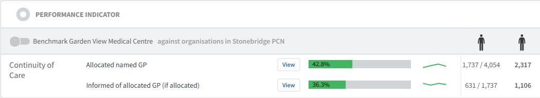 - The first column shows how many patients have been allocated a named GP and how many have been informed of their named GP.