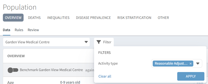 Alternatively, you can filter your dashboard using the filter icon. Select your activity type as Reasonable Adjustments and click Apply.