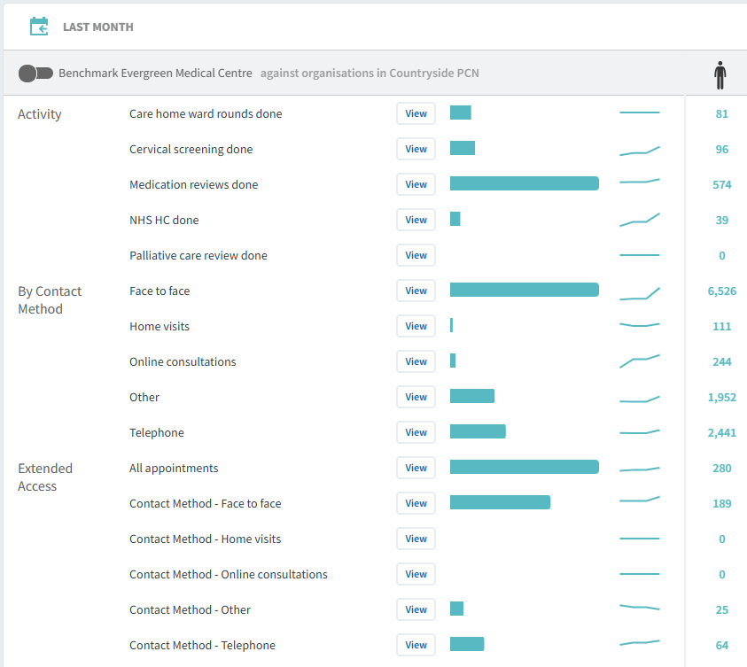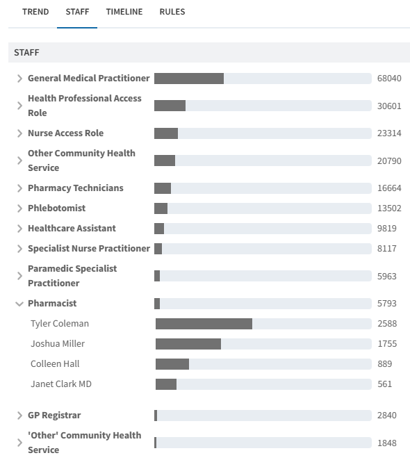 Apply these tools to other reports on your dashboard to visualise how patients are currently using the different services in your practice and what effect this is having on staff groups.