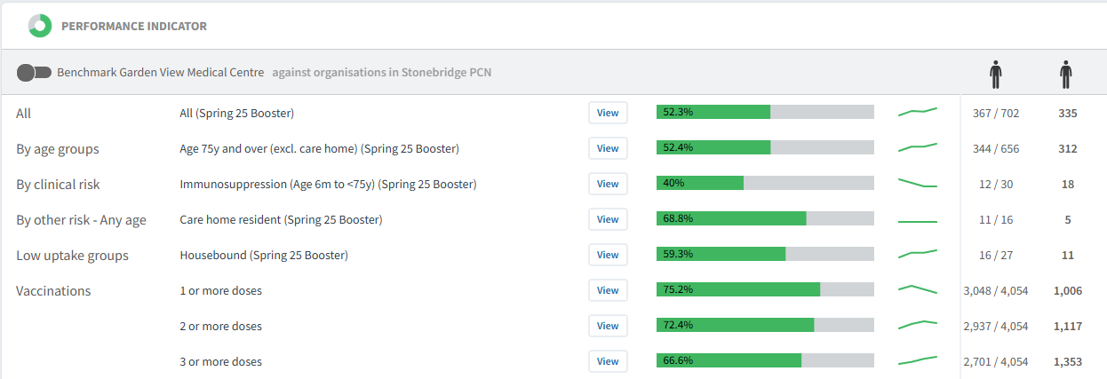This will open the single breakdown screen, enabling you to monitor your uptake and progress compared to neighboring practices and the Ardens National Average.