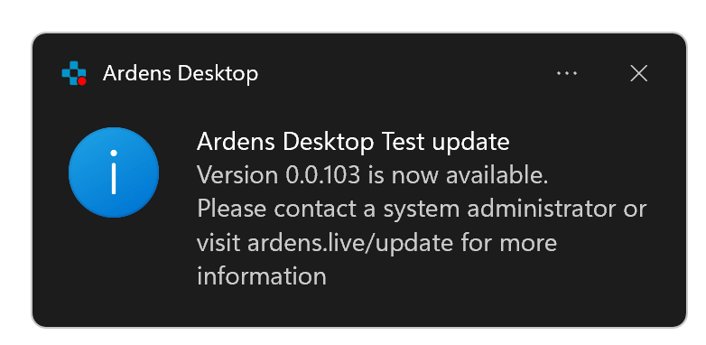 - If installed for Everybody: If during installation you selected the installation type "everybody" Ardens Desktop is unable to automatically update; a pop up (similar to that shown below) will be displayed and a system administrator will need to download and install the latest version.