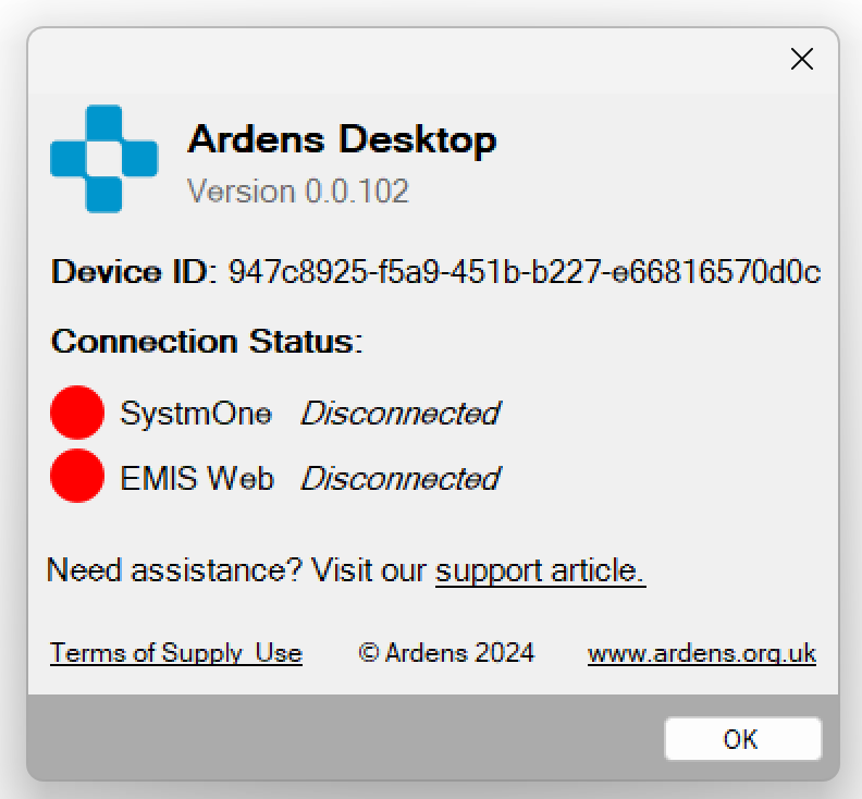 You may be asked by our Support team for your Device ID by our support team, this can be found by clicking on the Ardens icon in your system tray and selecting "About".