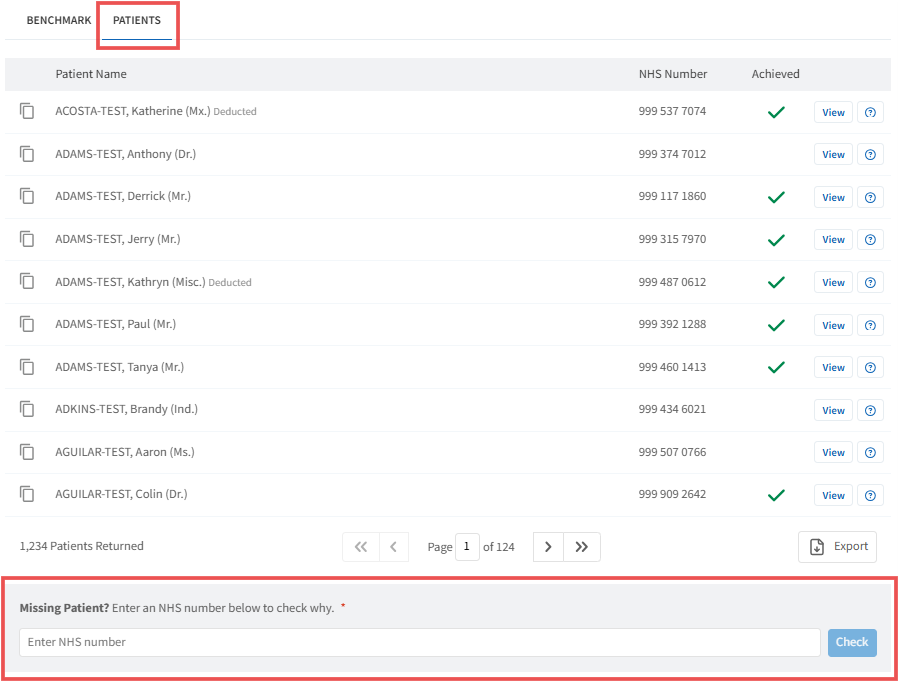 Yes. You can enter an NHS number to check why a patient is excluded from the report.